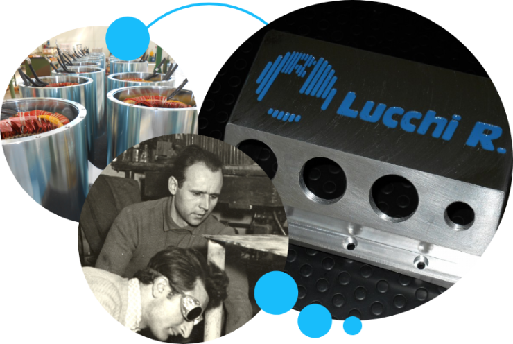 Riccardo Lucchi founded the company "Lucchi R. Elettromeccanica srl", orientated towards production and repairs of DC electric motors, repulsion/induction motors for sandblasters and equipment for test benches